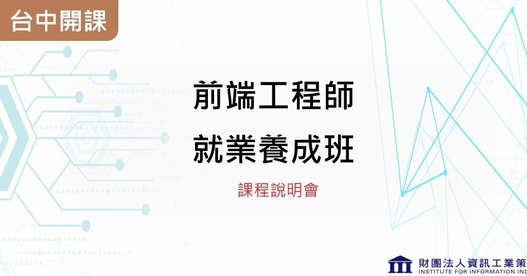 【台中】前端工程師就業養成班-1/13<免費說明會>